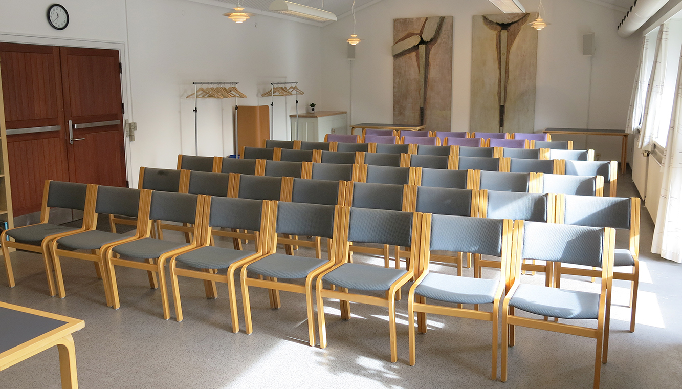 Plads til 50-60 personer ved opstilling på stolerækker.