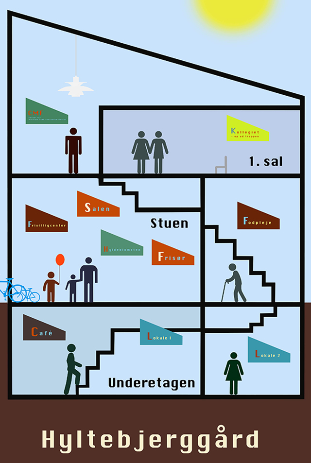 Hyltebjerggård er et civilsamfundshus og frivilligcenter, der summer af liv. De fysiske rammer er bygningerne fra slutningen af 1960´erne, der indtil for få år siden rummede et velfungerende plejehjem. Nu giver boligfløjene plads til et bo- og træningstilbud for unge med autisme og en stor, integreret daginstitution.